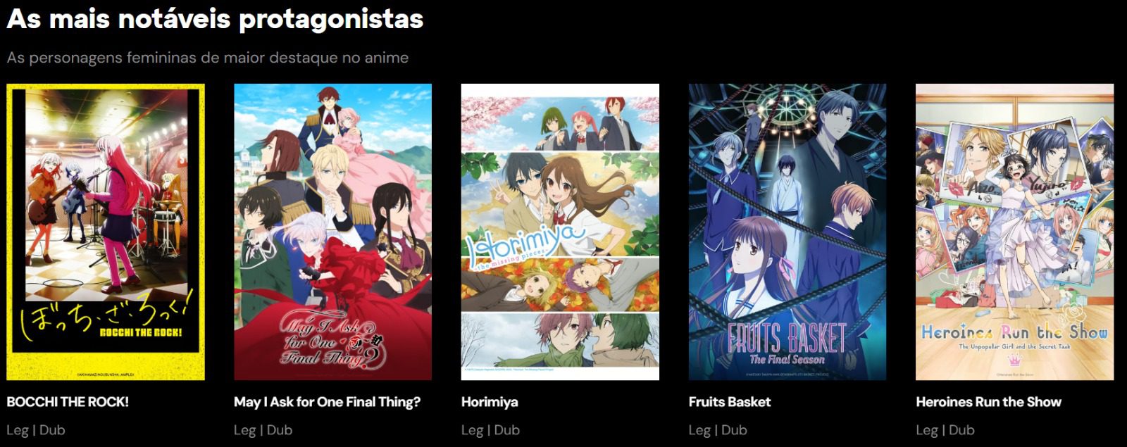 Entre os títulos selecionados, estão produções como Sailor Moon Crystal, Fruits Basket e Yona of the Dawn, que apresentam jornadas de amadurecimento, coragem e autodescoberta. Além disso, a lista também traz sucessos recentes como Dan Da Dan, The Apothecary Diaries e Bocchi the Rock!, mostrando a amplitude de gêneros que trazem o olhar dessas protagonistas, da ação à comédia, do drama ao sobrenatural.