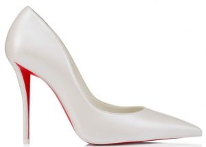 Para complementar o look, Dua escolheu o modelo Miss Z em branco, que se destacou na produção. Com bico fino e salto alto, o scarpin aparece como ponto de luz no visual mais sóbrio, trazendo equilíbrio entre clássico e moderno, além de evidenciar a icônica sola vermelha da Maison a cada passo.