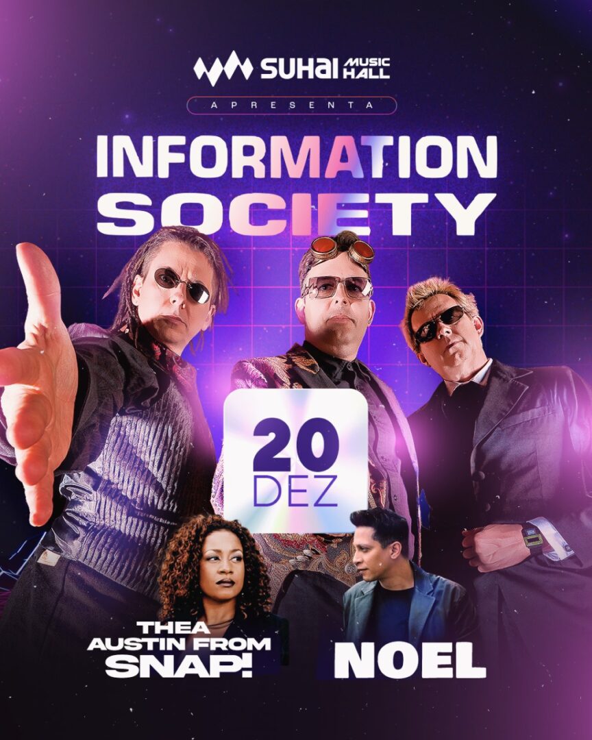 Após uma passagem consagrada por diversas capitais brasileiras, com casas cheias e público entusiasmado, Information Society, Thea Austin (SNAP!) e Noel encerram a turnê brasileira 2025 em São Paulo, em uma noite especial na Suhai Music Hall, no sábado, 20 de dezembro. O show marca o grande final de um projeto que celebrou a era de ouro da dance music, reunindo gerações em torno de clássicos que atravessaram décadas. Na capital paulista, o público terá a última oportunidade de vivenciar esse encontro histórico em 2025, em uma apresentação que promete emoção, nostalgia e uma celebração coletiva da música que marcou os anos 90.