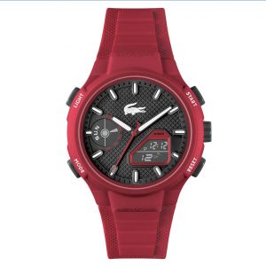 Os lançamentos chegam com pulseiras de borracha em sete cores – entre modelos femininos e masculinos: vermelho, verde, preto, rosa, laranja, laranja semitransparente e azul, somando-se à coleção que já contava com cinco modelos. As combinações marcantes incluem laranja ou vermelho vibrante com mostrador escuro, cáqui com detalhes laranja e branco com elementos no verde icônico da Lacoste.