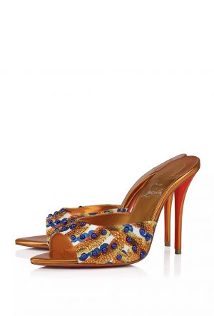 Se antes o salto alto complementava a produção, agora ele domina a cena. Nas criações de Christian Louboutin, o brilho deixa de ser detalhe e passa a ser protagonista. Cristais, strass multicoloridos e aplicações meticulosas transformam cada modelo em uma verdadeira peça-joia.