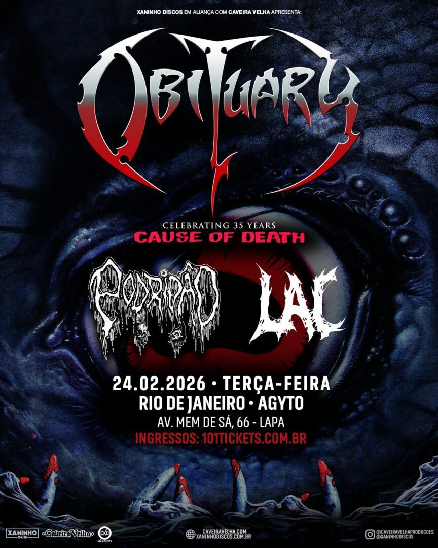 Em São Paulo/SP, o Obituary se apresenta no dia 21 de fevereiro, no Carioca Club, como atração principal do Overload Beer Fest 2026, que também terá Vulcano (com participação especial do vocalista Angel), Surra, D.E.R. e Cemitério. Saiba mais aqui.