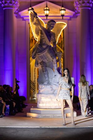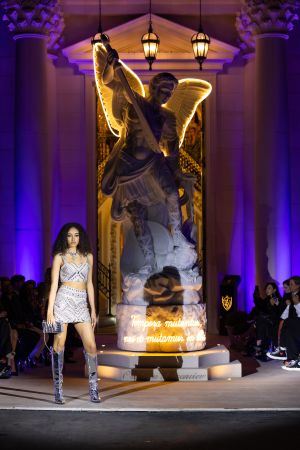 Texturas ricas, aplicações elaboradas e detalhes dignos da alta-costura definem cada peça, expressando a fusão característica da maison entre glamour, poder e sensualidade contemporânea. O resultado é um guarda-roupa concebido para ocasiões extraordinárias — uma celebração do artesanato e do espetáculo, em que cada look se torna uma afirmação de individualidade e prestígio.